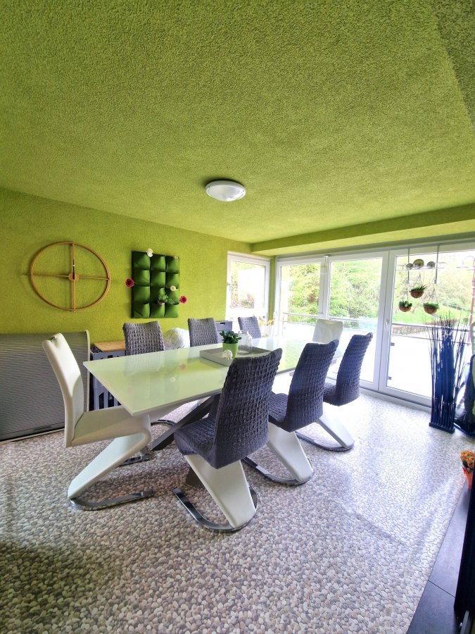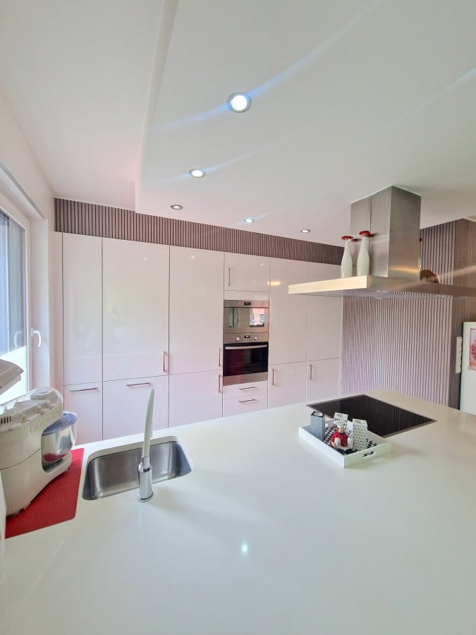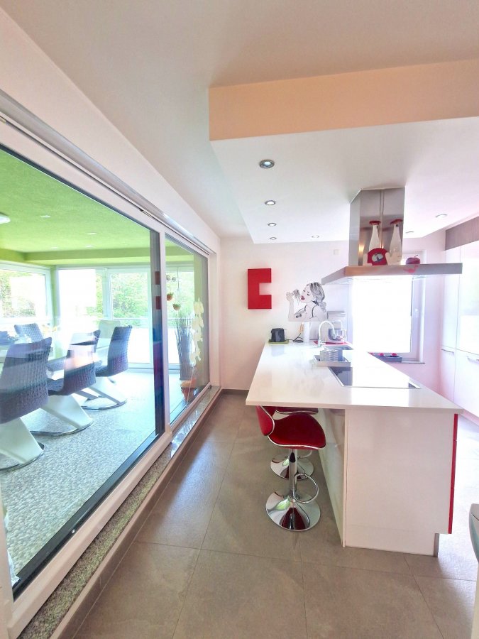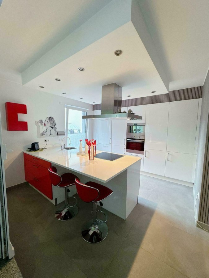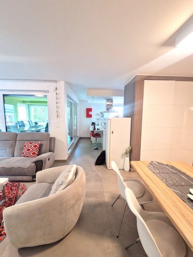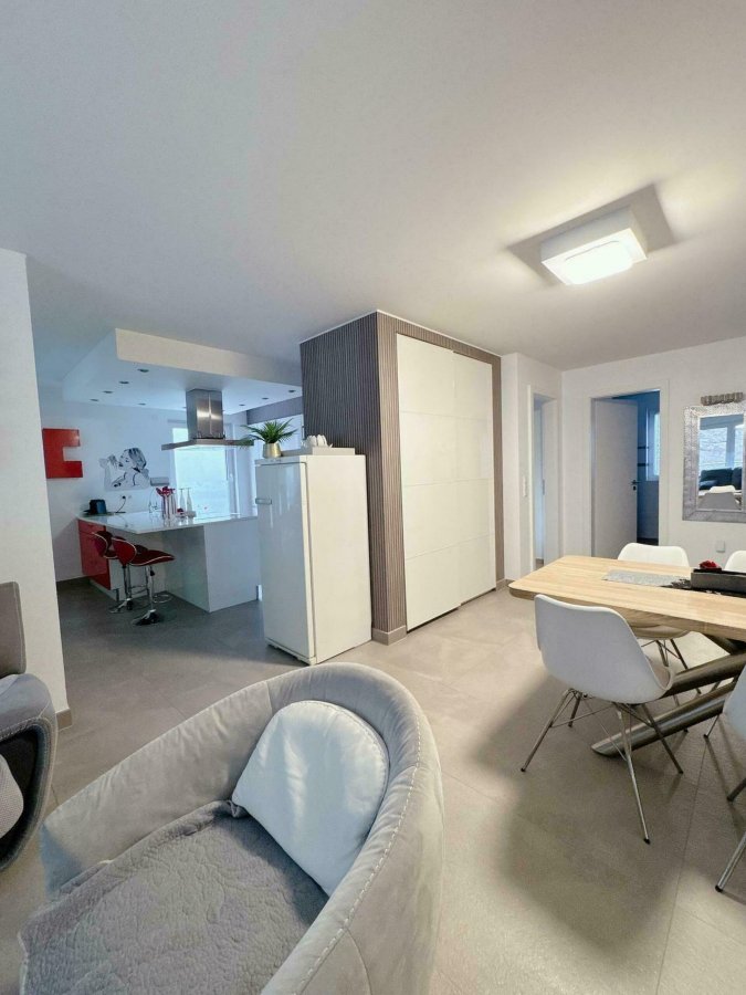 - Salon/salle à manger avec cuisine équipée haut de gamme semis ouverte