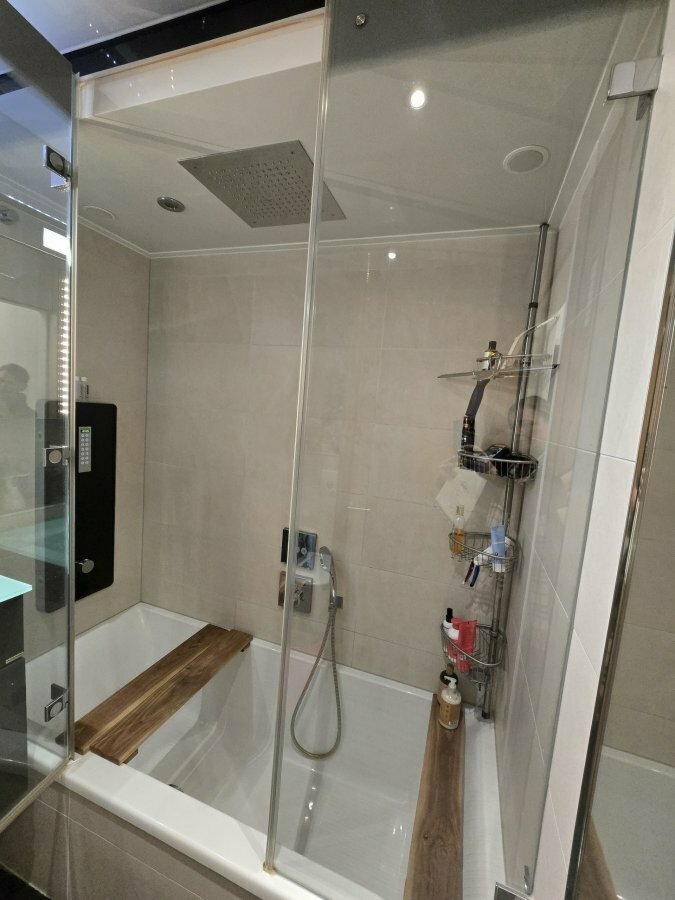 -Salle de bain de 8,1 m² équipée d'un combiné baignoire-douche-hammam, idéale pour vos moments de détente.