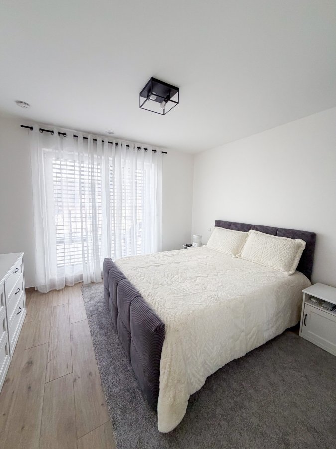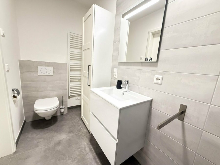 La chambre est confortable et bien agencée, la salle de bain contemporaine, et le WC séparé apporte un supplément de praticité au quotidien.