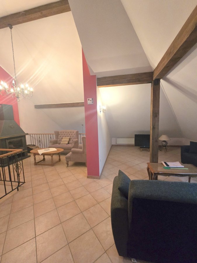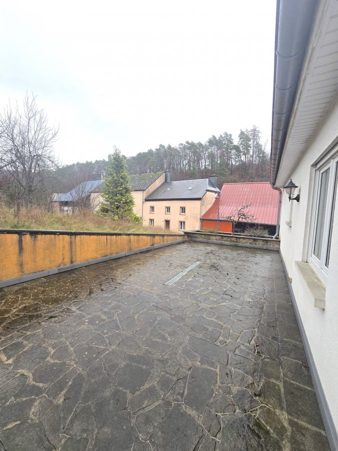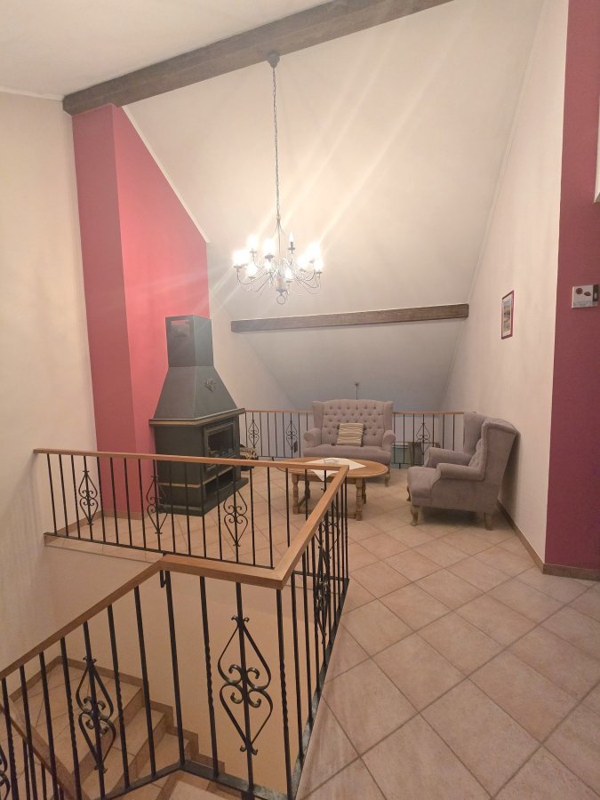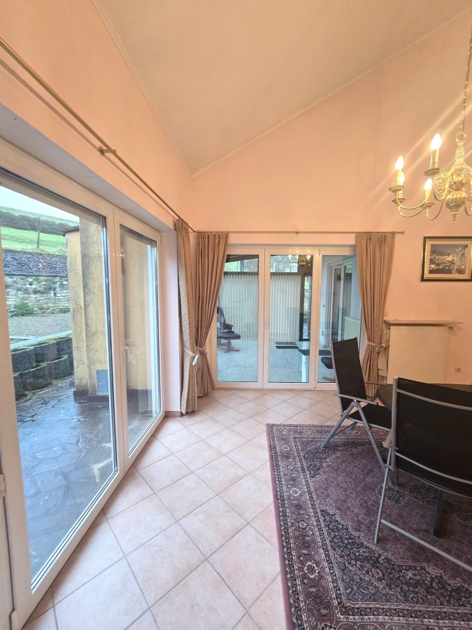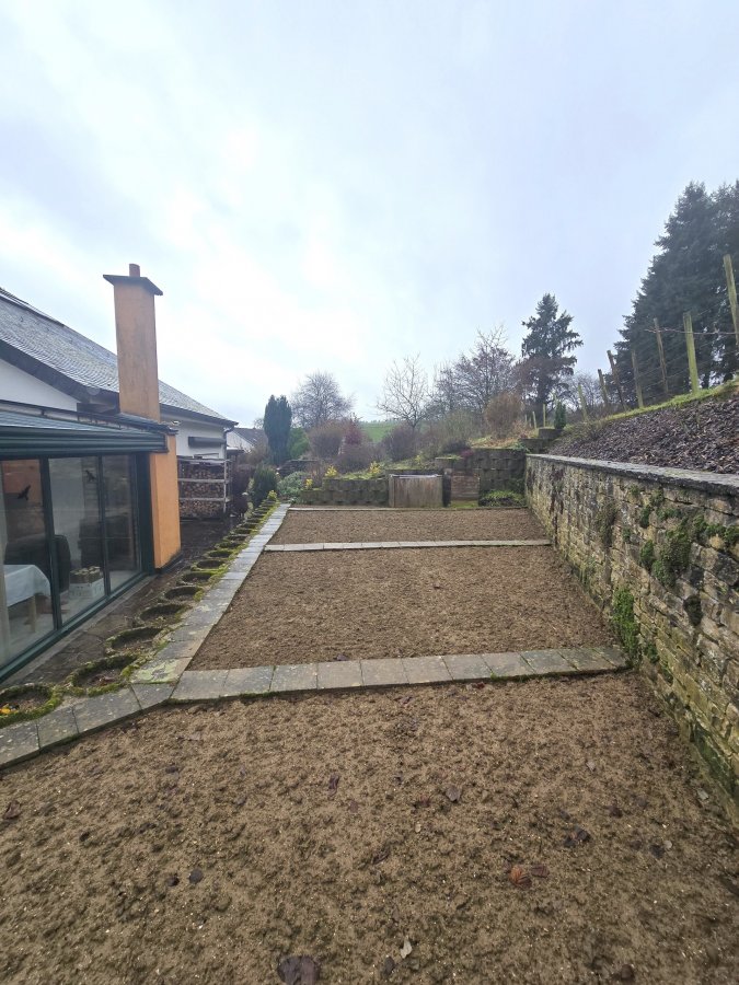 Extérieur: - spacieuse terrasse avec coin jardin / potager. Atouts: - Châssis PVC et fenêtre double vitrage - Porte en chêne massif - Feu ouvert et poêles à bois - Véranda avec poêle à bois équipé d'un toit ouvrant avec marquise électrique