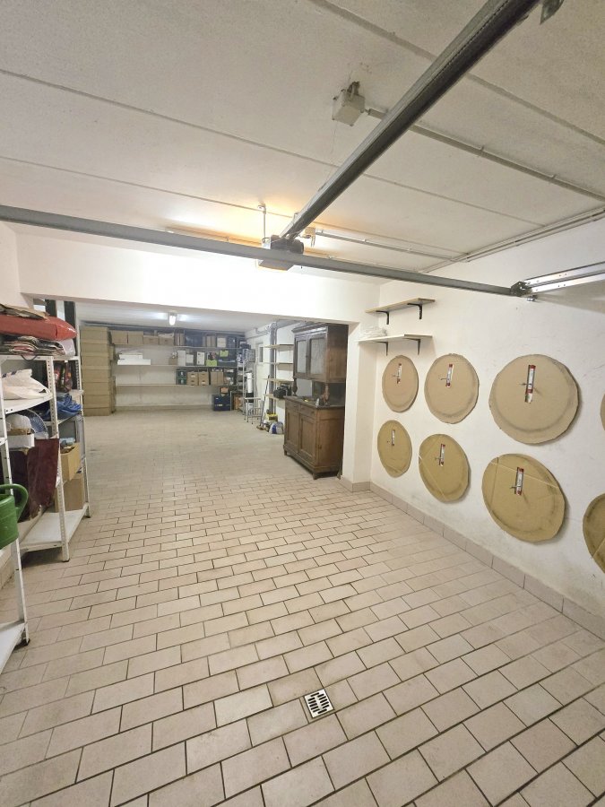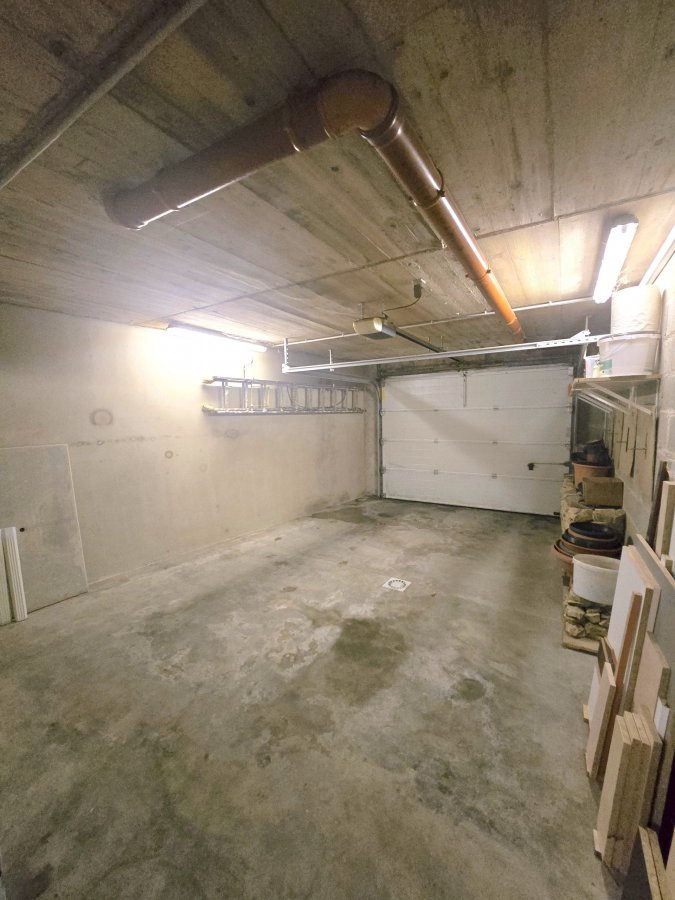 Niveau rue: - spacieux hall d'entrée avec coin vestiaire - 1 chambre à coucher ou bureau - buanderie / cave/ chaufferie - cave à vin - 2 garages dont 1 pour 2 voitures.