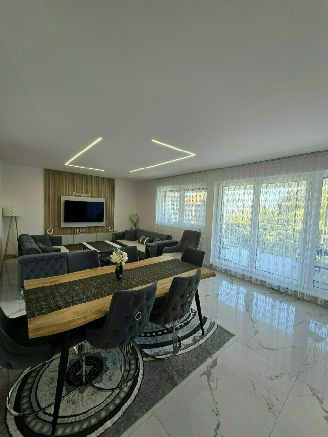 - Grand salon et salle à manger donnant à une terrasse de +/- 18 m2 avec superbe vue sans vis à vis.