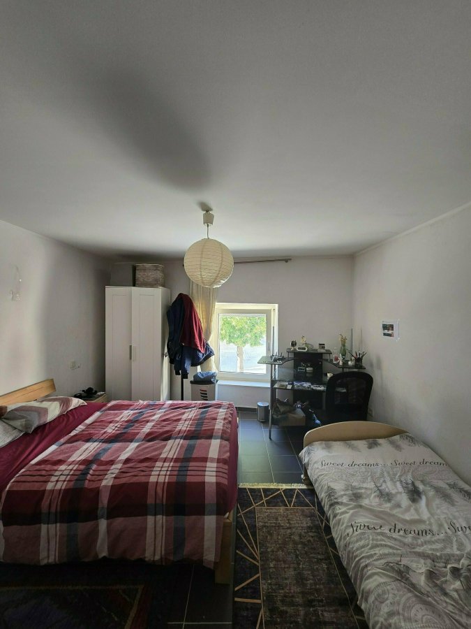 Immo Nordstrooss vous propose une charmante maison de trois grande chambres à coucher, living avec salle à manger et cuisine ouverte, salle de douche avec fenêtre, espace cave chaufferie, espace rangement ou dressing, deuxième salle de douche aussi avec fenêtre.